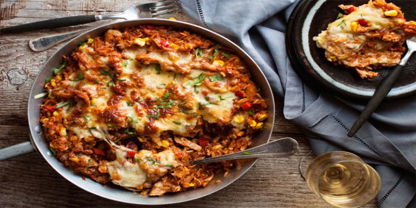 Once the cheeses are melt and incorporated into the rice, the casserole is ready. Serve the smoky hot Mexican chicken & rice casserole and enjoy!